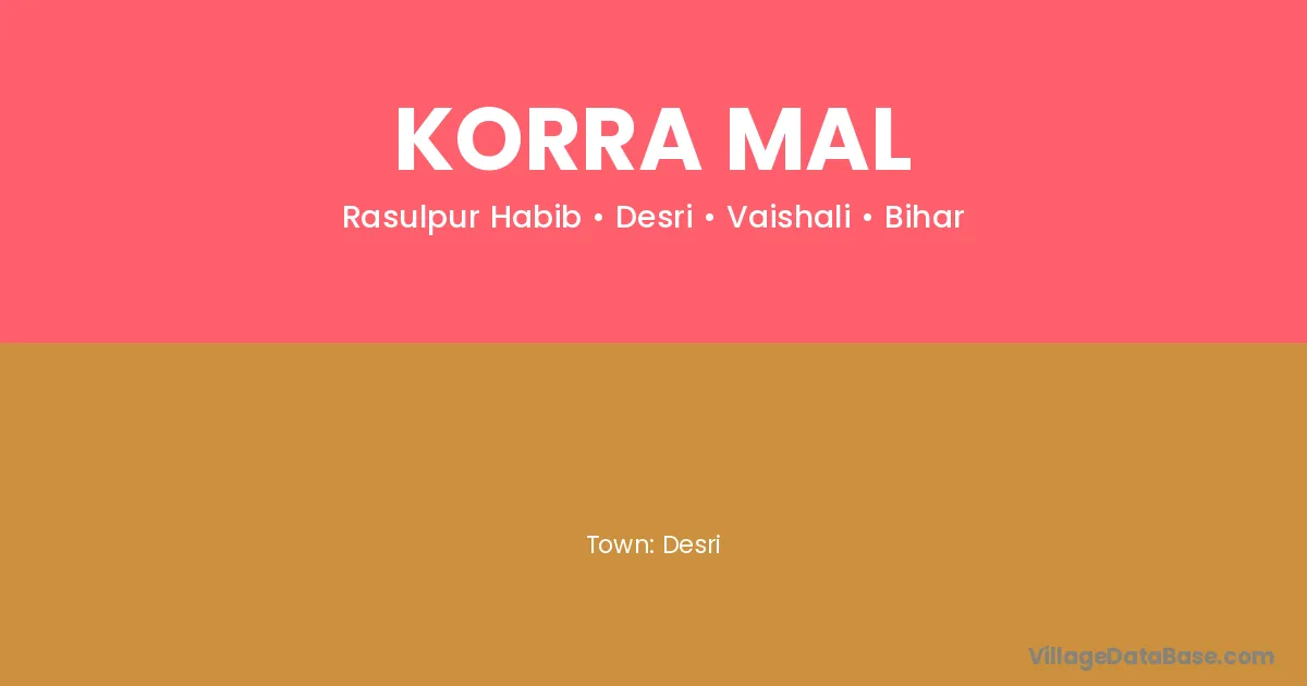 Korra Mal village is located in the Desri Subdivision of the Vaishali district in Bihar .