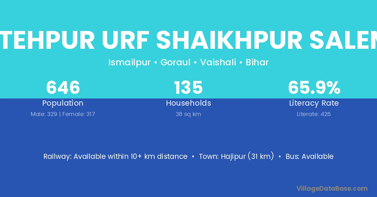 Hajipur (31 km) is the nearest town to Fatehpur Urf Shaikhpur Salema village for major economic activities and is located approximately 31 km away.