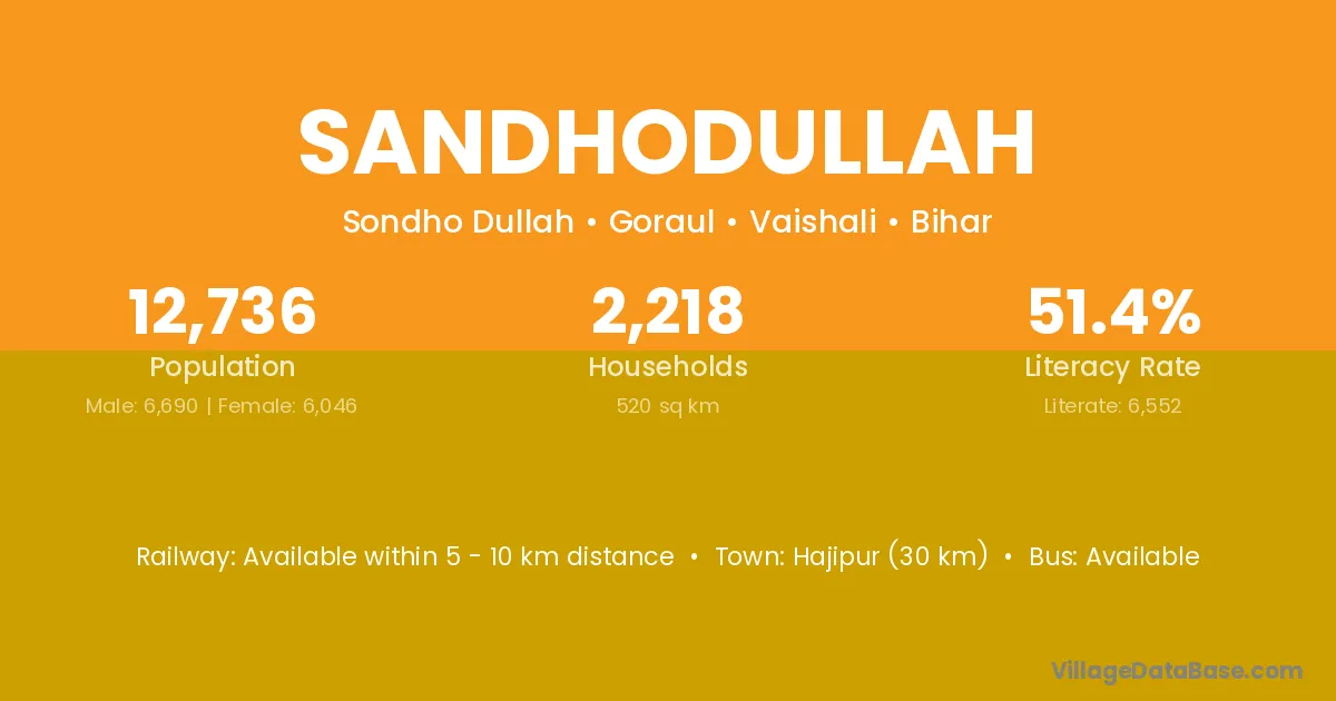 Hajipur (30 km) is the nearest town to Sandhodullah village for major economic activities and is located approximately 30 km away.