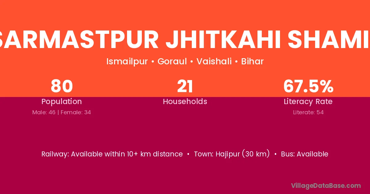 Sarmastpur Jhitkahi Shamil village has a total population of 80 people, of which 46 are males and 34 are females.