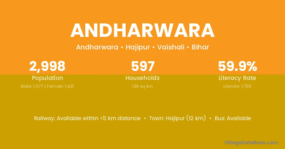 Hajipur (12 km) is the nearest town to Andharwara village for major economic activities and is located approximately 12 km away.