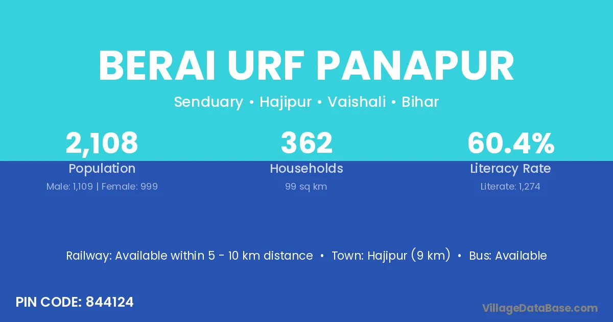 Berai Urf Panapur village has a total population of 2,108 people, of which 1,109 are males and 999 are females.
