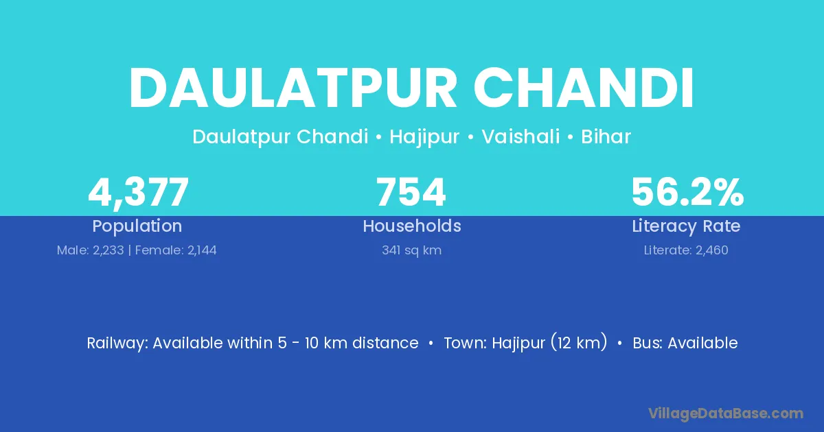 Hajipur (12 km) is the nearest town to Daulatpur Chandi village for major economic activities and is located approximately 12 km away.