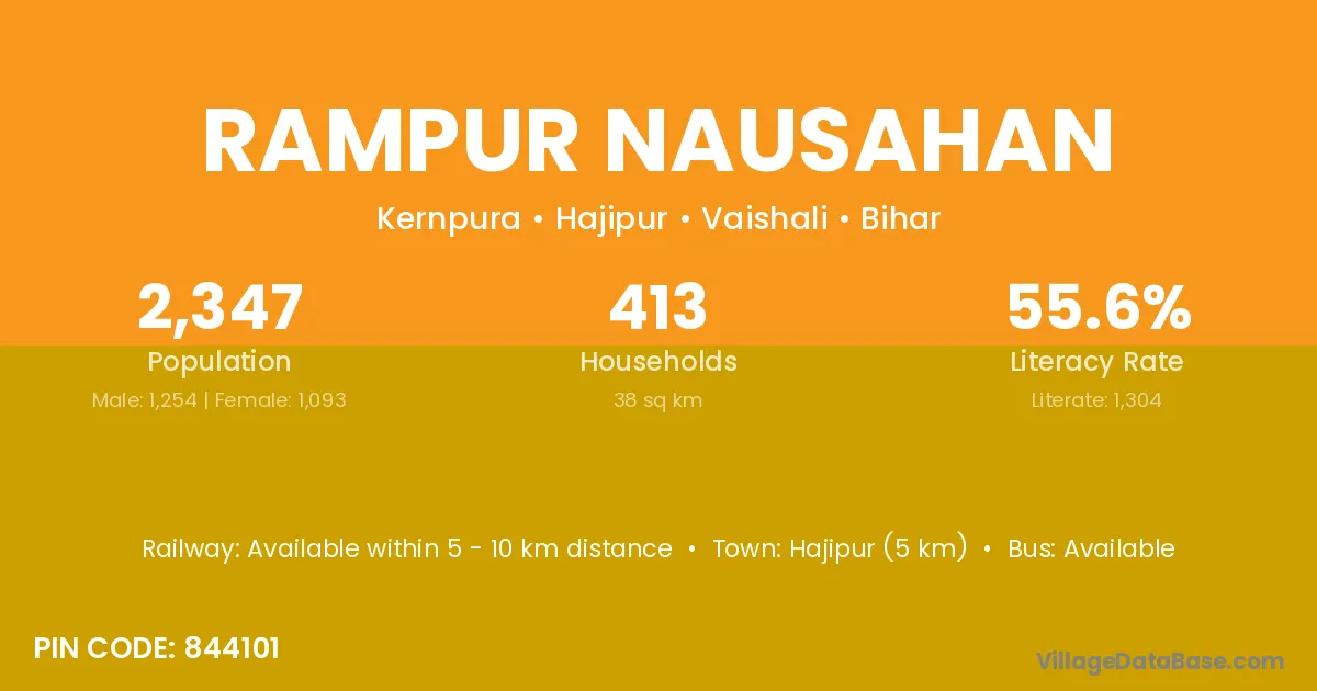 Hajipur (5 km) is the nearest town to Rampur Nausahan village for major economic activities and is located approximately 5 km away.