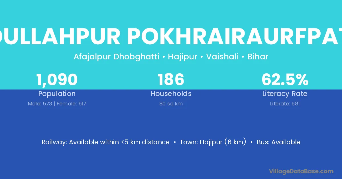 Hajipur (6 km) is the nearest town to Sadullahpur Pokhrairaurfpatali village for major economic activities and is located approximately 6 km away.