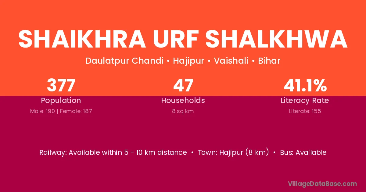 Shaikhra Urf Shalkhwa village has a total population of 377 people, of which 190 are males and 187 are females.