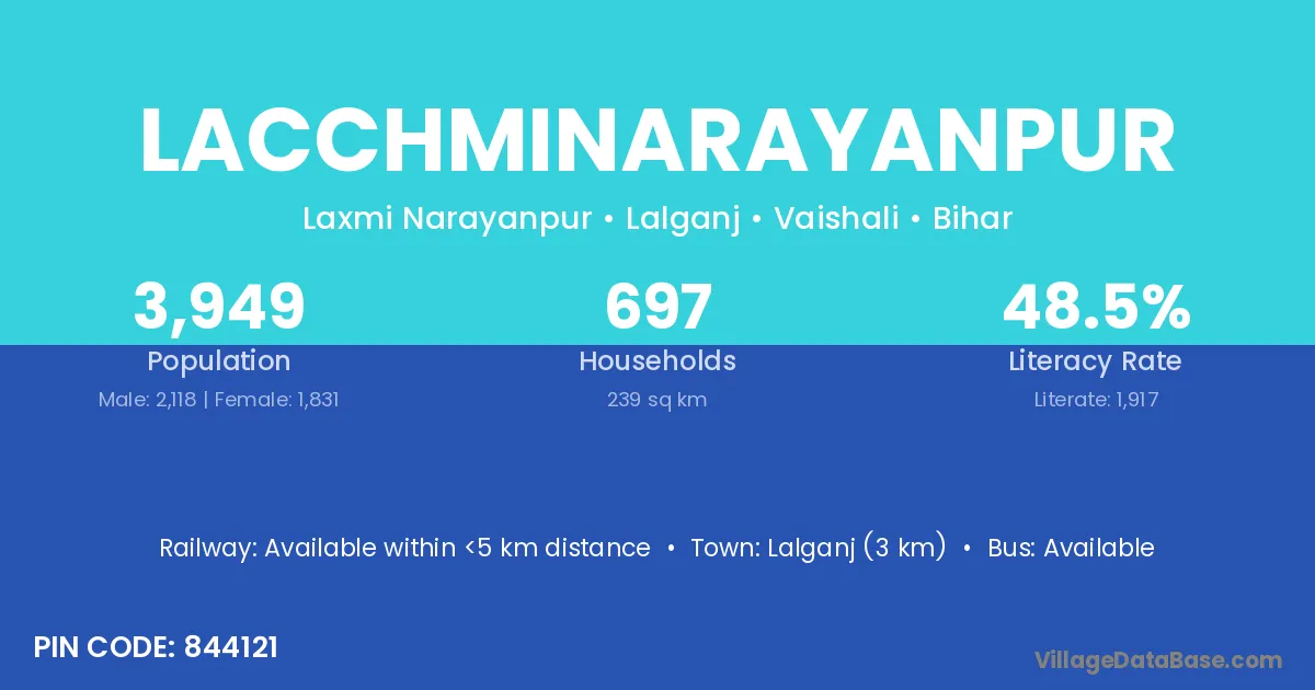 Lalganj (3 km) is the nearest town to Lacchminarayanpur village for major economic activities and is located approximately 3 km away.