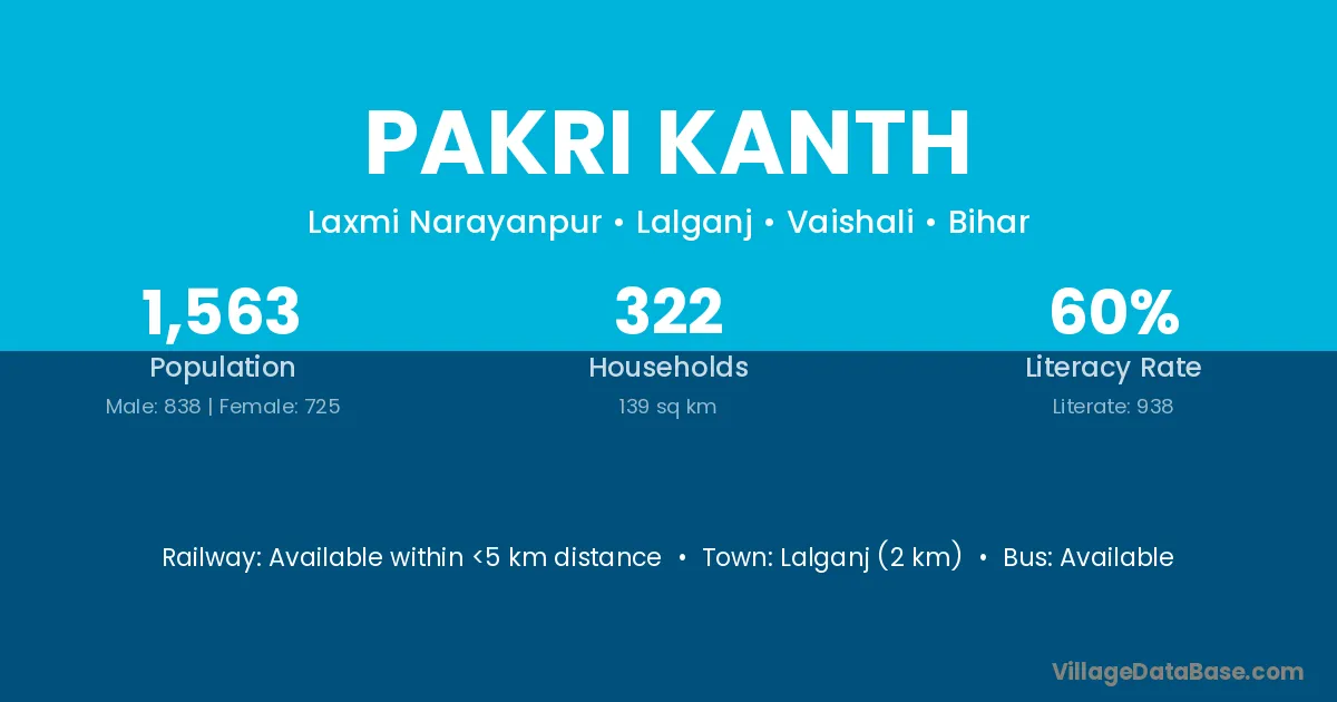 Lalganj (2 km) is the nearest town to Pakri Kanth village for major economic activities and is located approximately 2 km away.