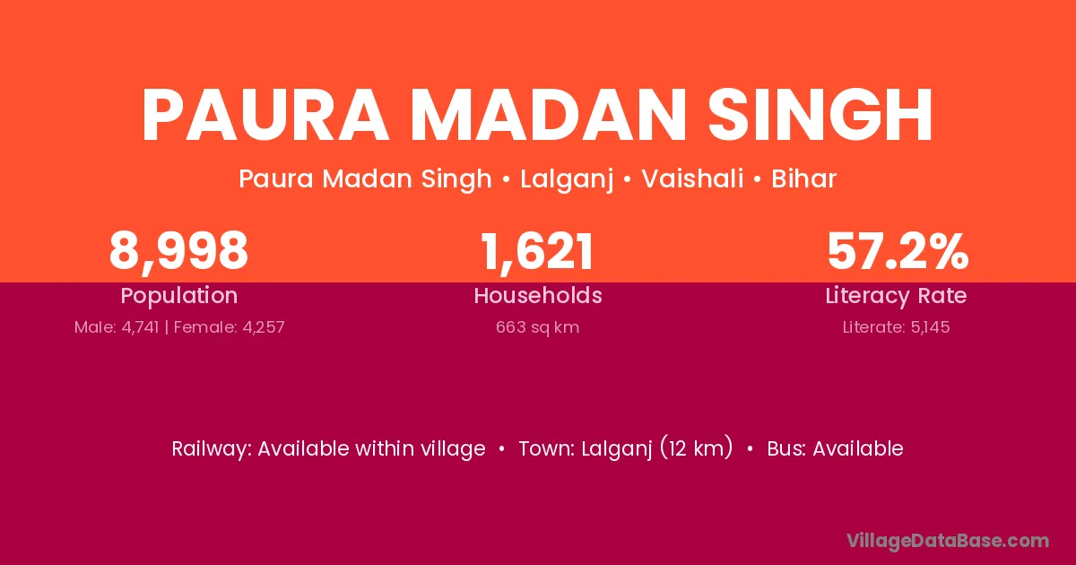 Lalganj (12 km) is the nearest town to Paura Madan Singh village for major economic activities and is located approximately 12 km away.