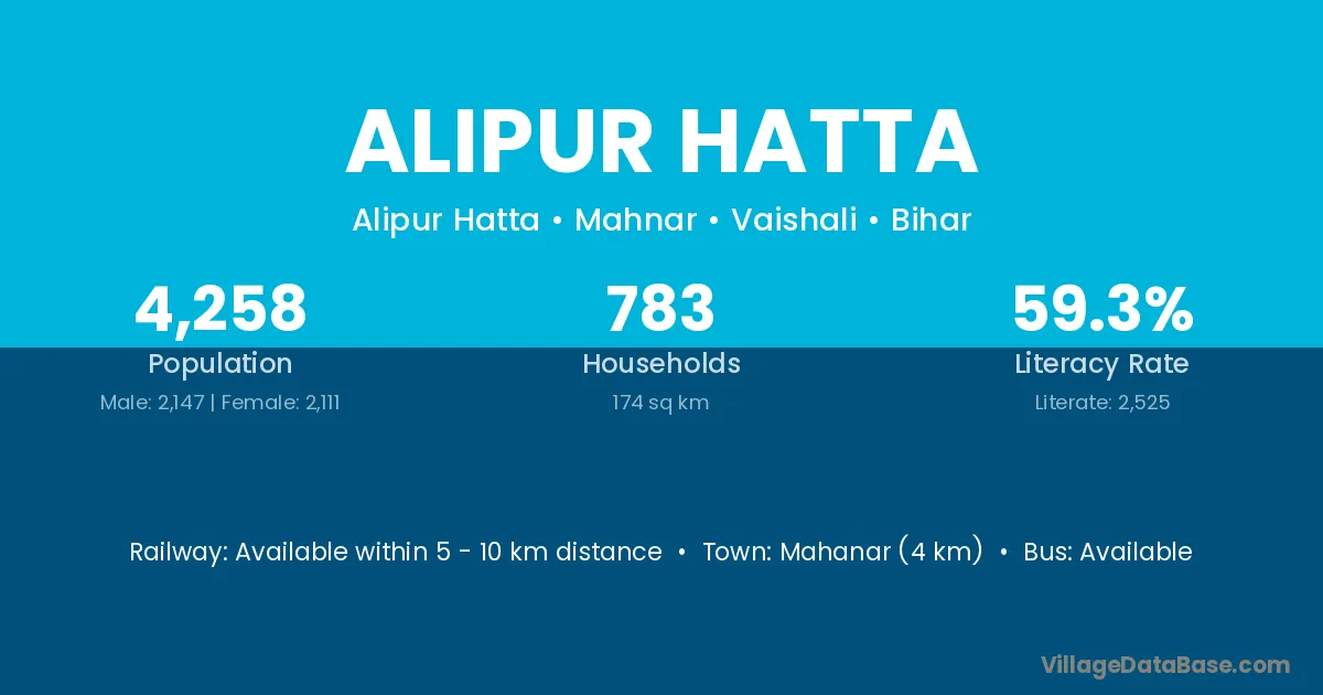 Mahanar (4 km) is the nearest town to Alipur Hatta village for major economic activities and is located approximately 4 km away.