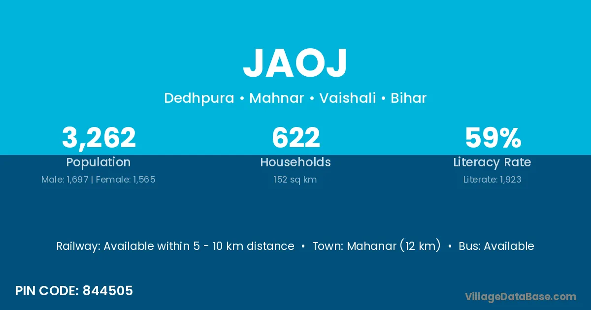 Mahanar (12 km) is the nearest town to Jaoj village for major economic activities and is located approximately 12 km away.