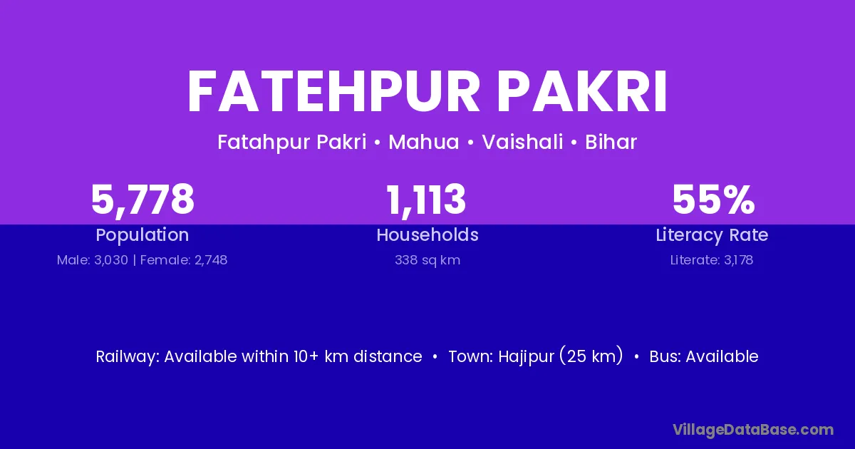 Hajipur (25 km) is the nearest town to Fatehpur Pakri village for major economic activities and is located approximately 25 km away.