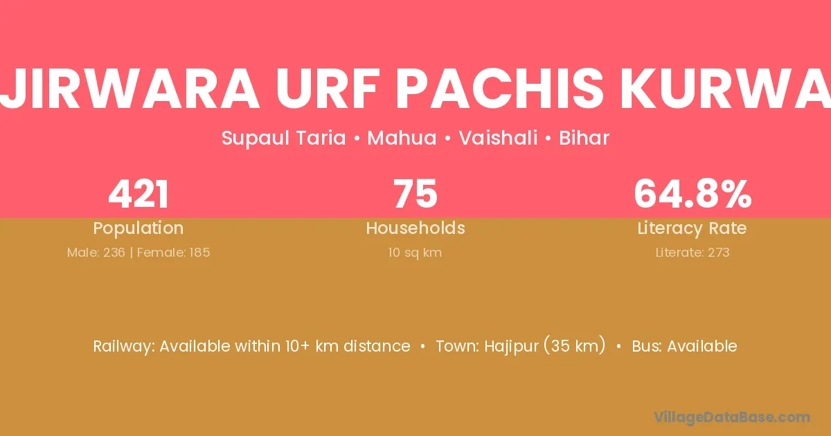 Jirwara Urf Pachis Kurwa village has a total population of 421 people, of which 236 are males and 185 are females.