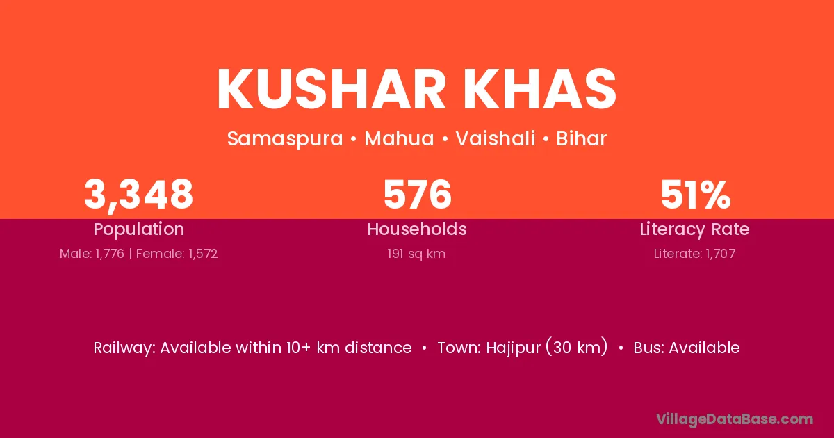 Hajipur (30 km) is the nearest town to Kushar Khas village for major economic activities and is located approximately 30 km away.