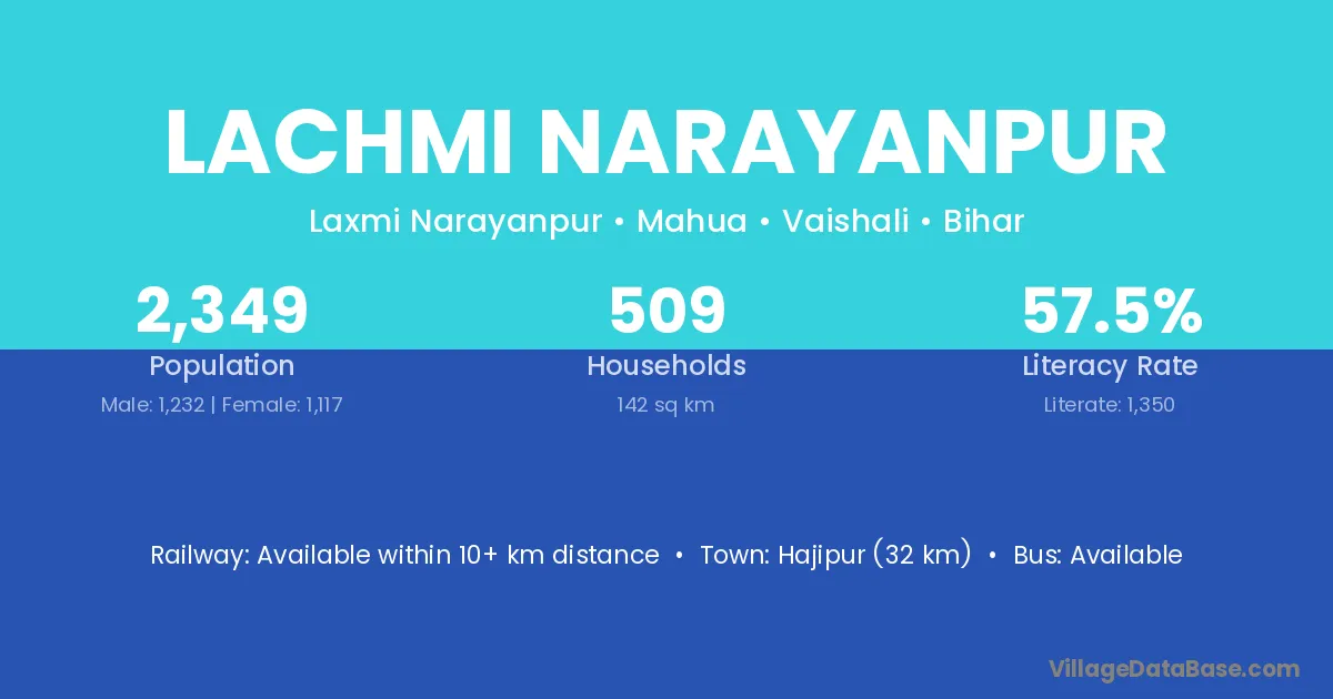 Hajipur (32 km) is the nearest town to Lachmi Narayanpur village for major economic activities and is located approximately 32 km away.