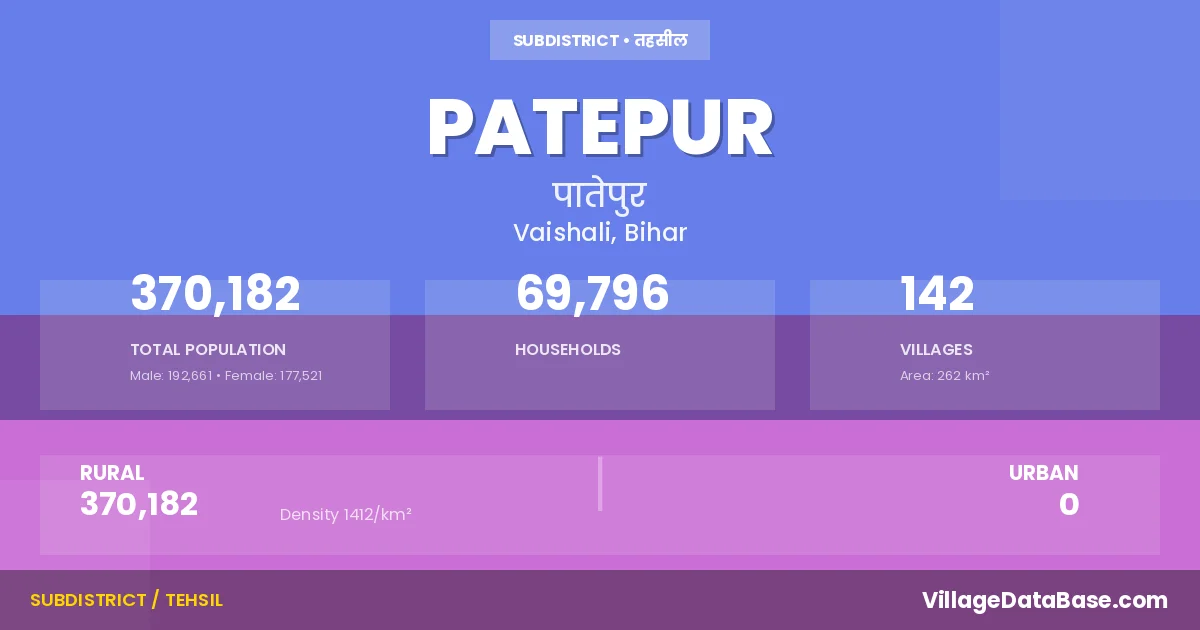 Patepur is a town and Subdivision in the Vaishali district of the Bihar. In India, a Subdivision is a subdivision of a district responsible for the administration and revenue collection of a specific area within the district. Subdivisions play a crucial role in the local governance structure, contributing significantly to the development and administration of their communities.