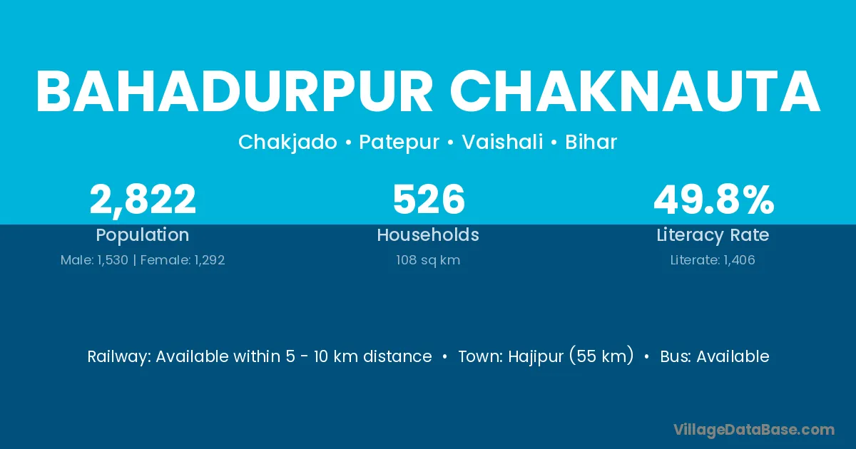 Bahadurpur Chaknauta village has a total population of 2,822 people, of which 1,530 are males and 1,292 are females.