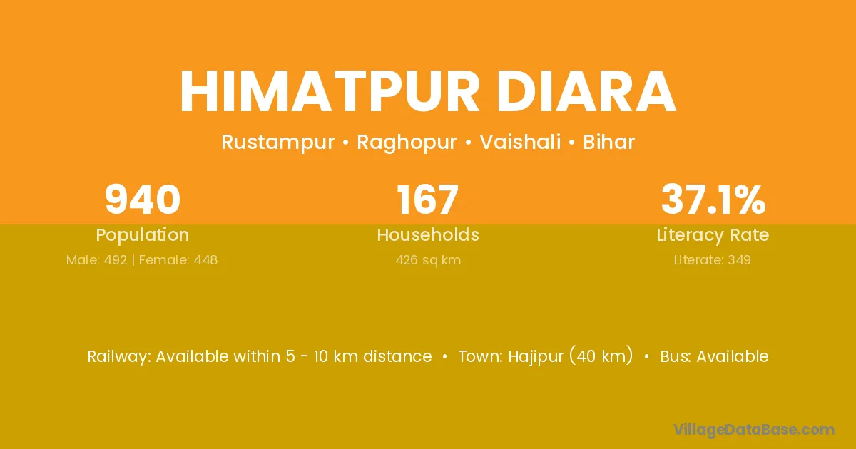 Himatpur Diara village has a total population of 940 people, of which 492 are males and 448 are females.