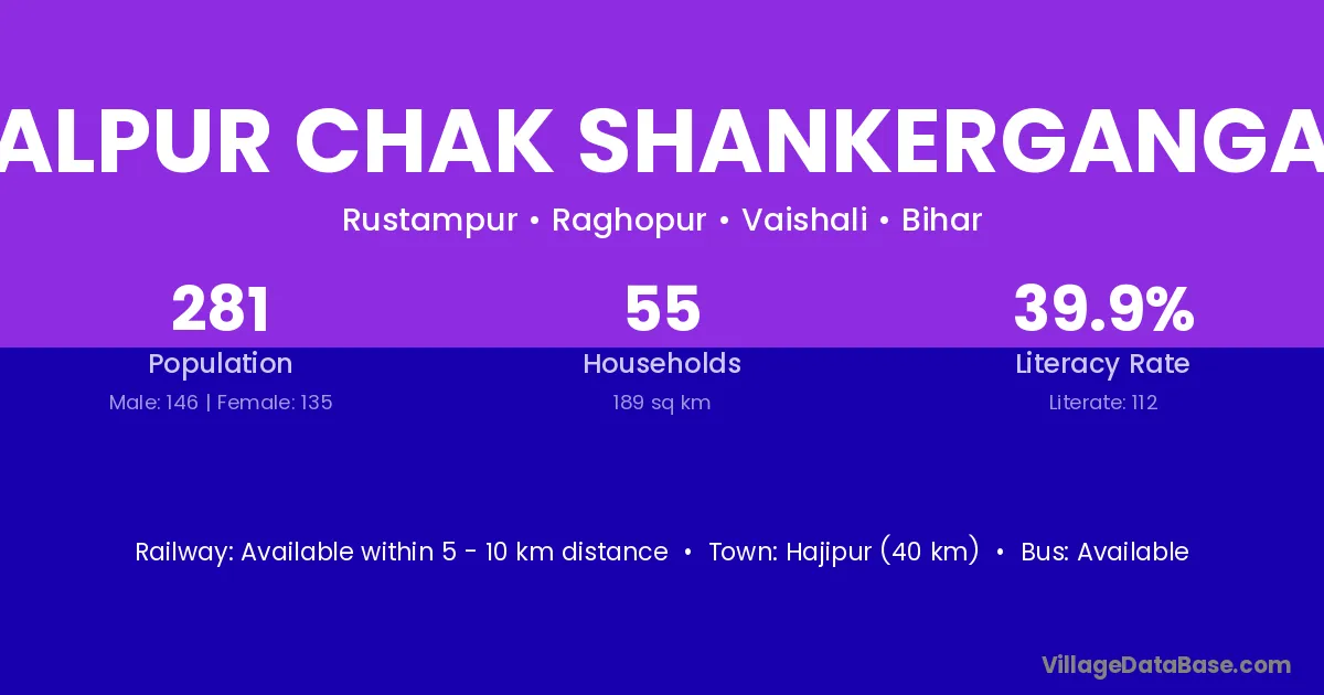 Jamalpur Chak Shankerganga Pra village has a total population of 281 people, of which 146 are males and 135 are females.