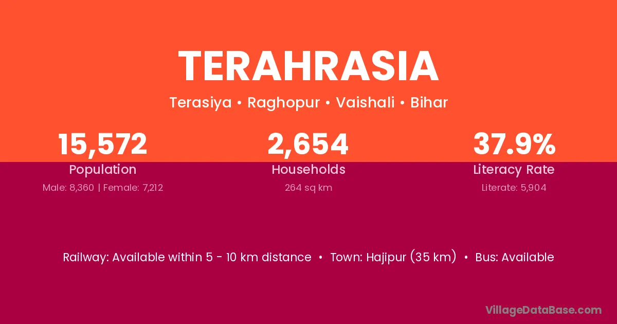 Hajipur (35 km) is the nearest town to Terahrasia village for major economic activities and is located approximately 35 km away.