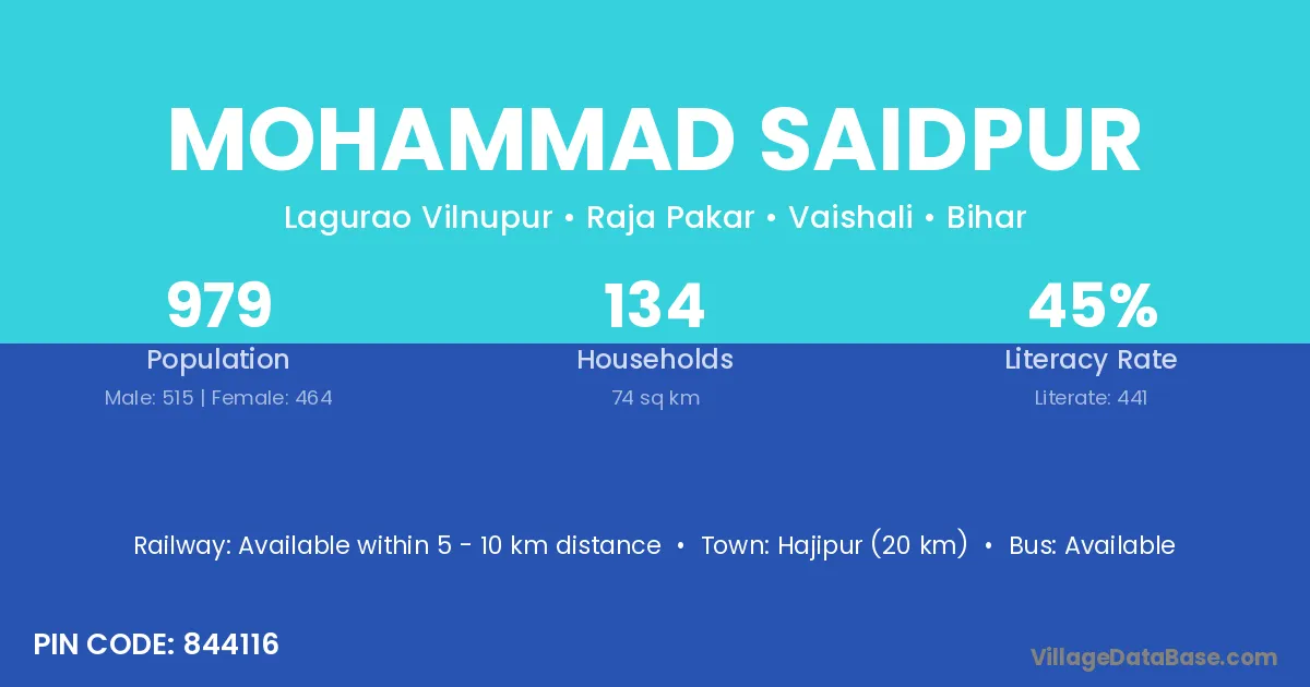 Mohammad Saidpur village has a total population of 979 people, of which 515 are males and 464 are females.