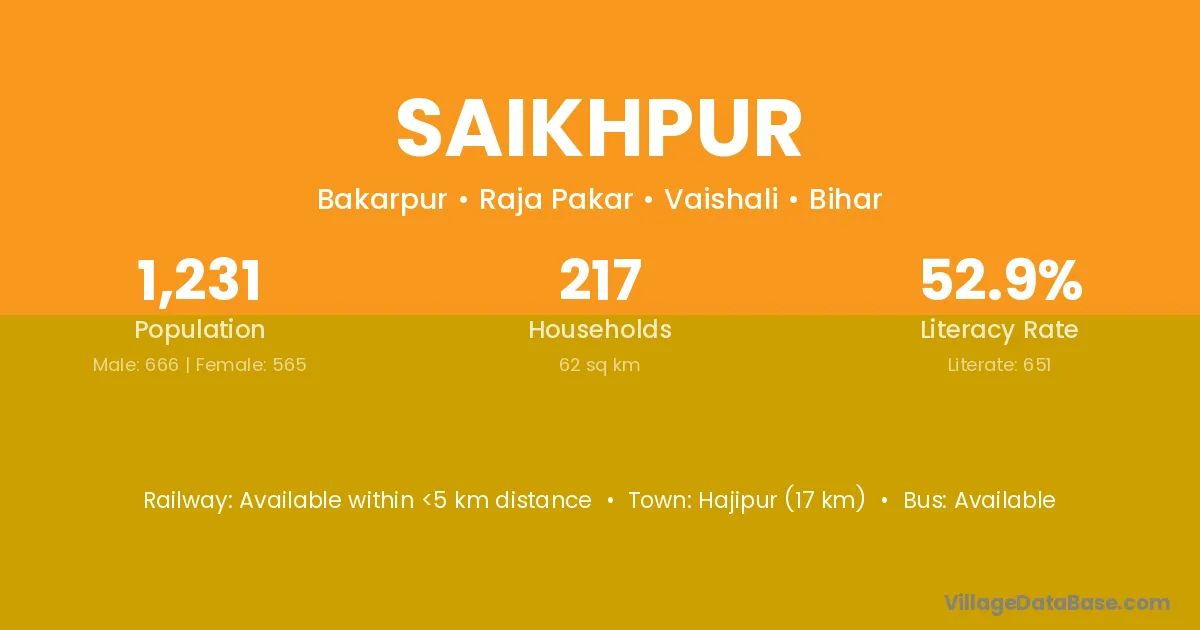 Hajipur (17 km) is the nearest town to Saikhpur village for major economic activities and is located approximately 17 km away.