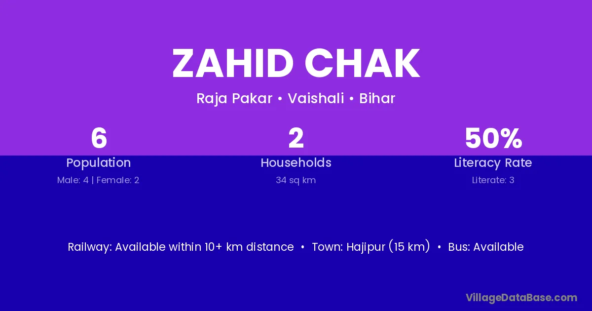 Hajipur (15 km) is the nearest town to Zahid Chak village for major economic activities and is located approximately 15 km away.