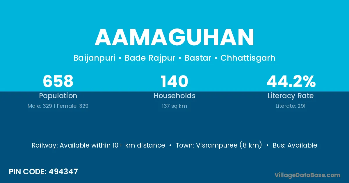 Aamaguhan village has a total population of 658 people, of which 329 are males and 329 are females.