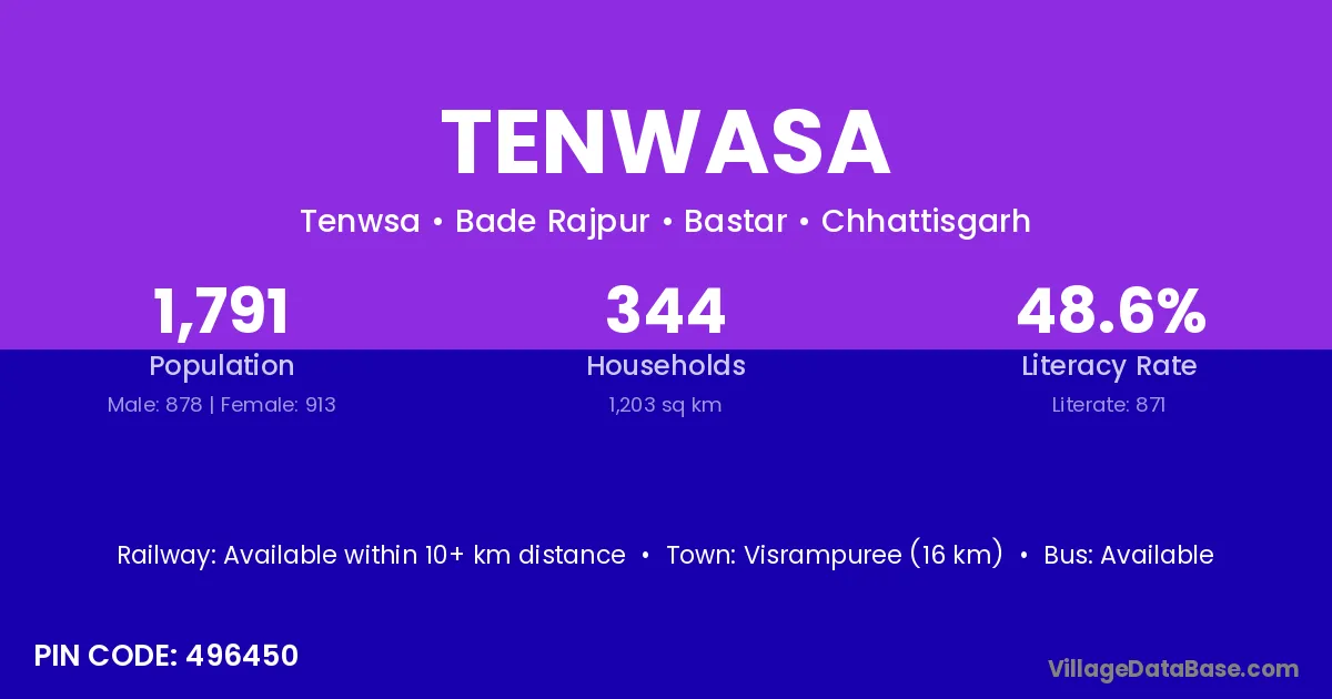 According to Census 2011 information, the village code of Tenwasa village is 496450.
