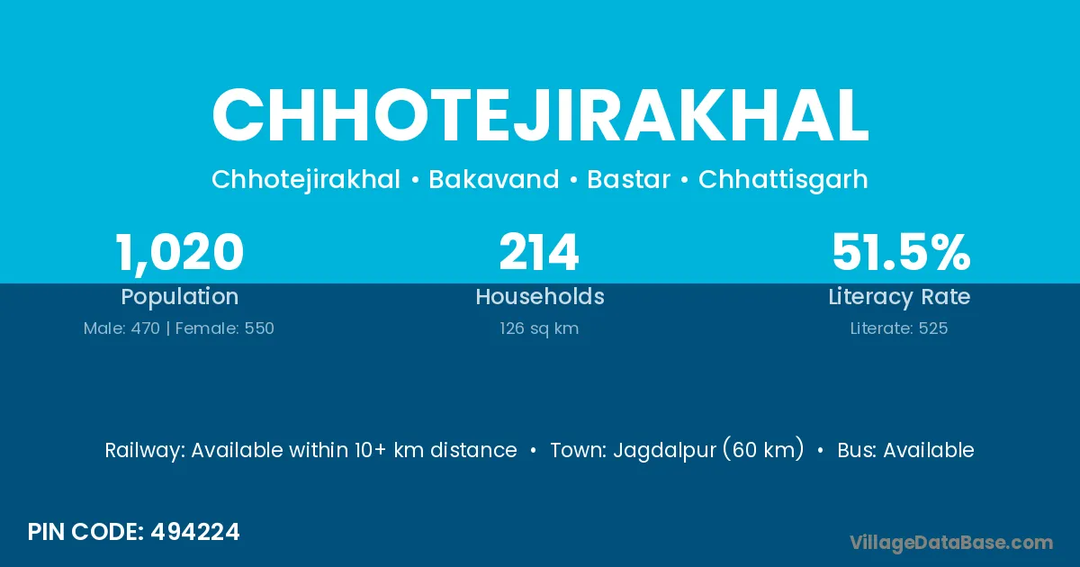 According to Census 2011 information, the village code of Chhotejirakhal village is 494224.