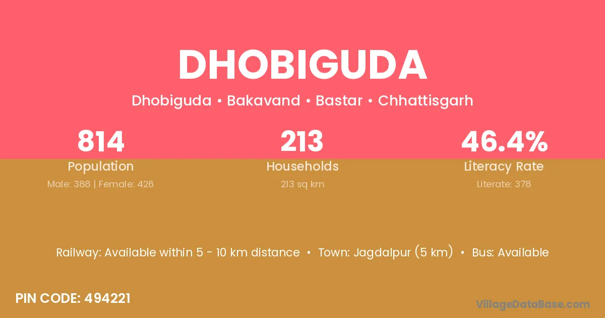 According to Census 2011 information, the village code of Dhobiguda village is 494221.