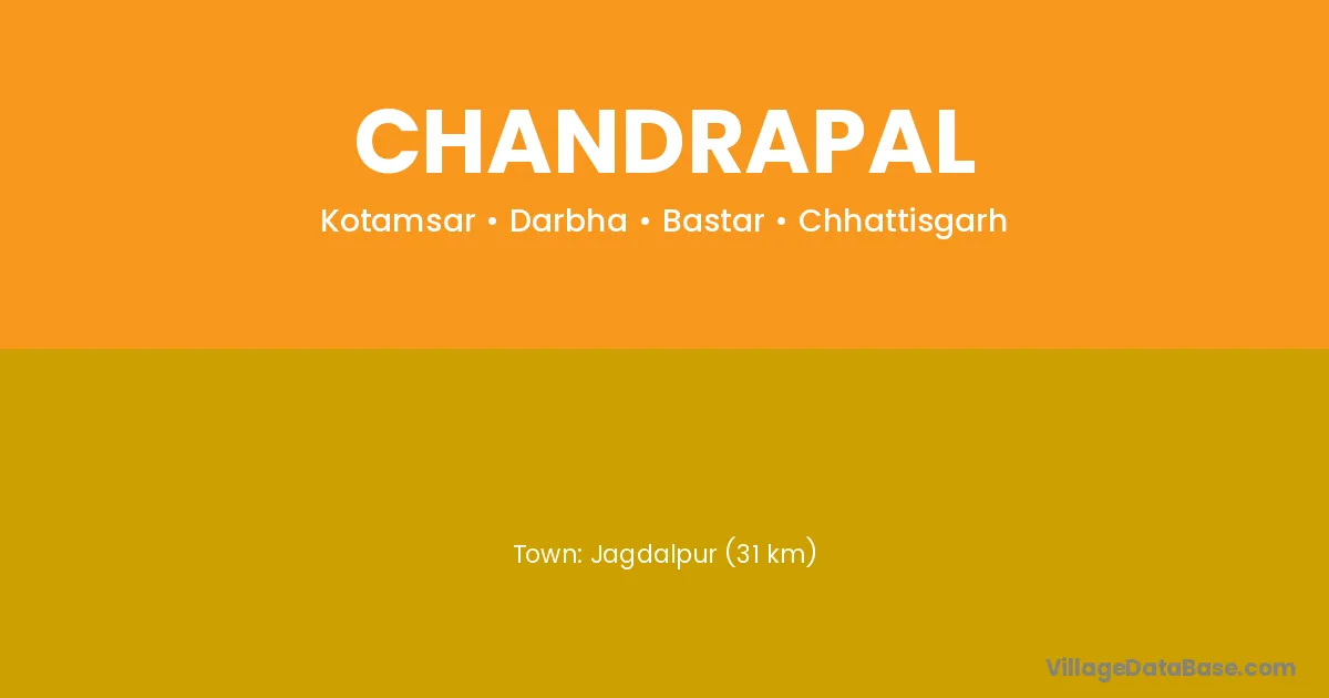 Jagdalpur (31 km) is the nearest town to Chandrapal village for major economic activities and is located approximately 31 km away.