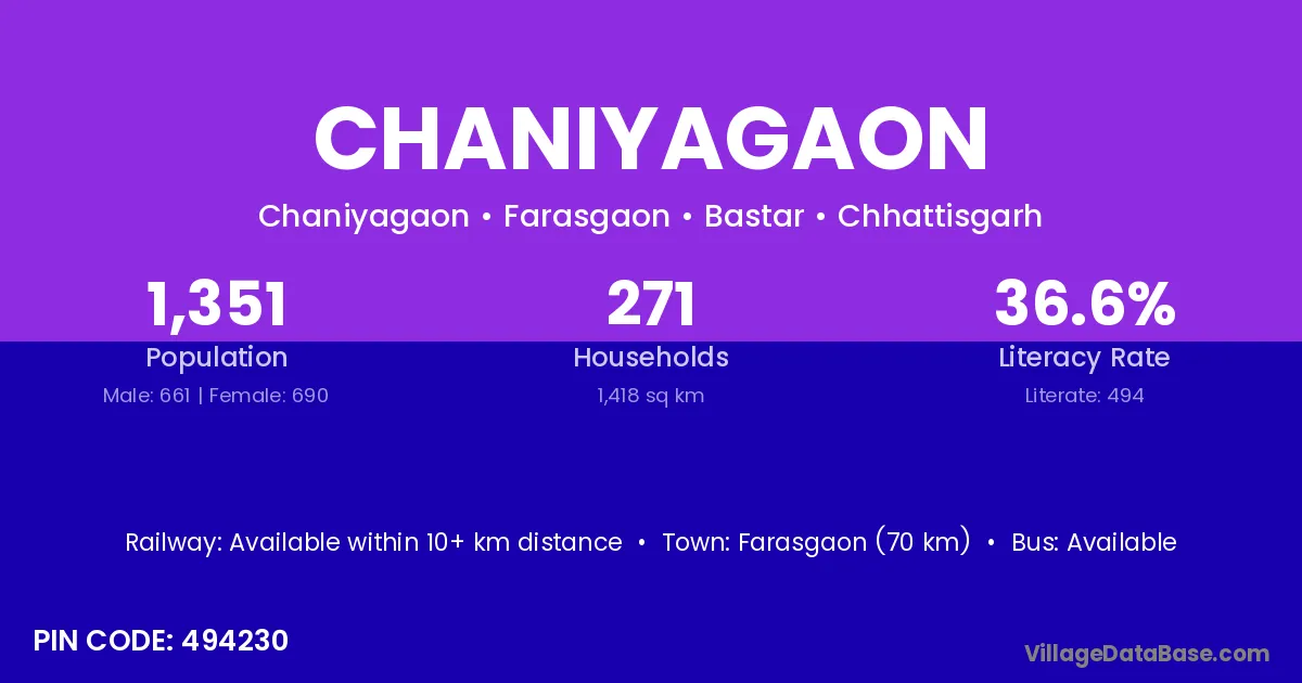 Chaniyagaon village has a total population of 1,351 people, of which 661 are males and 690 are females.