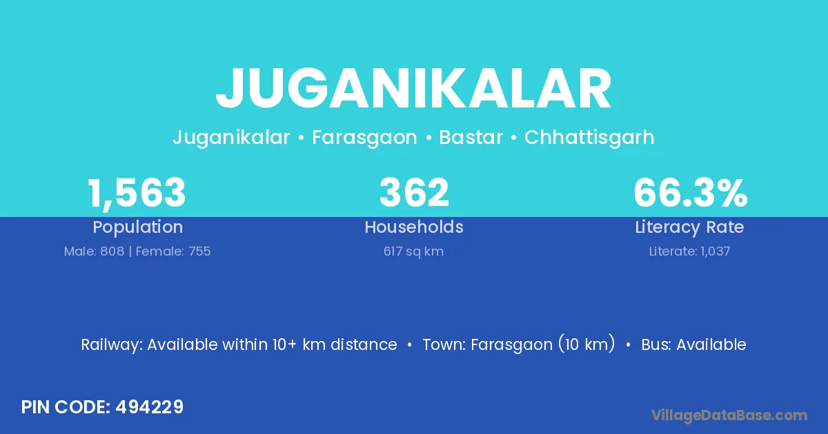 According to Census 2011 information, the village code of Juganikalar village is 494229.