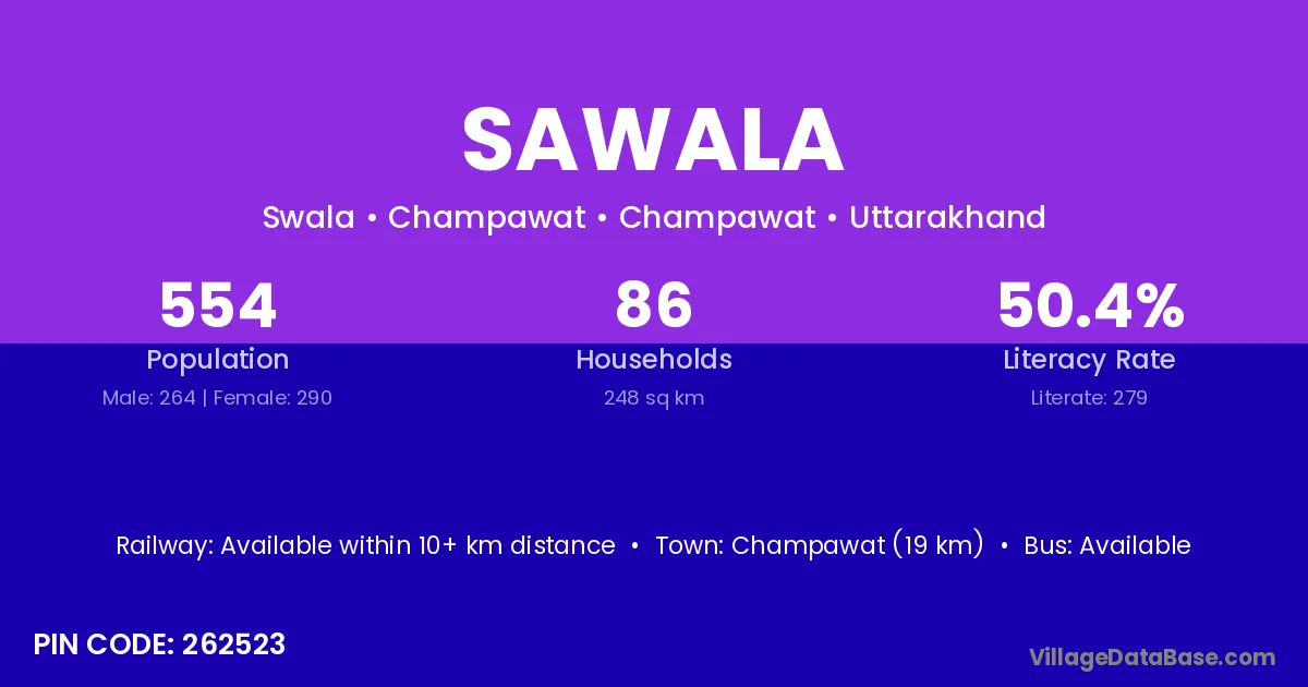Sawala village has a total population of 1,258 people, of which 630 are males and 628 are females.