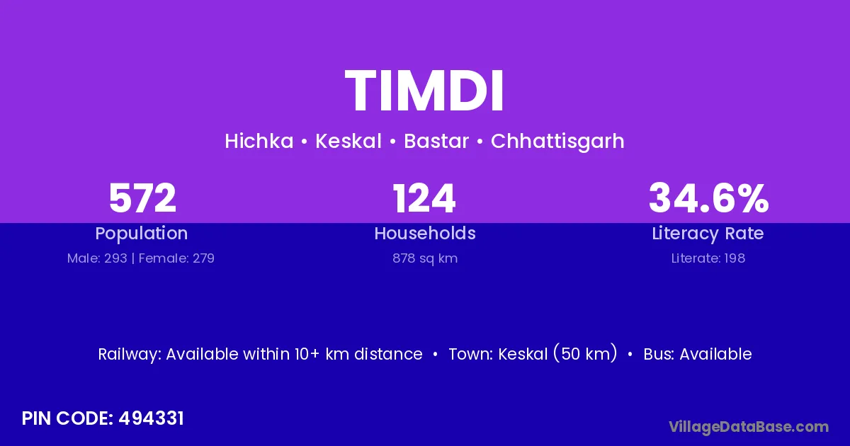 Timdi village is located in the Keskal Tehsil of the Bastar district in Chhattisgarh .