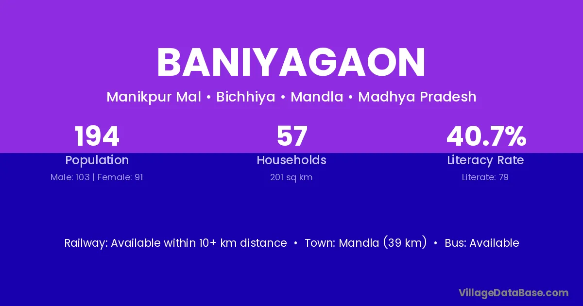 According to Census 2011 information, the village code of Baniyagaon village is 494224.
