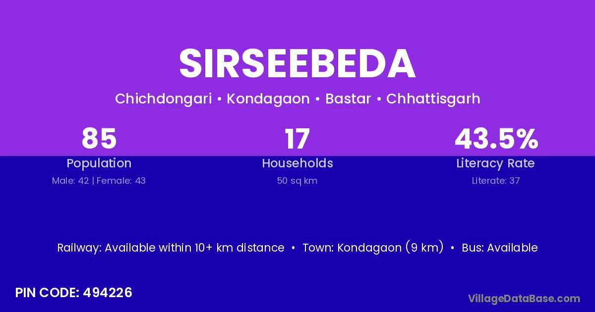 According to Census 2011 information, the village code of Sirseebeda village is 494226.