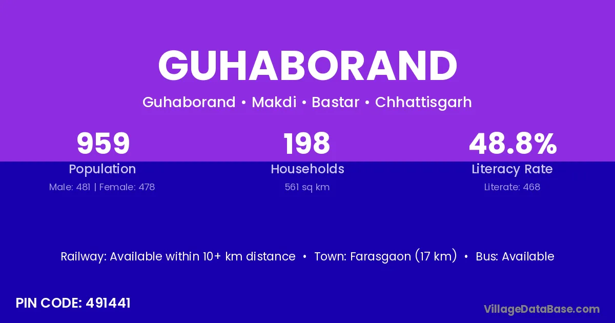 Farasgaon (17 km) is the nearest town to Guhaborand village for major economic activities and is located approximately 17 km away.