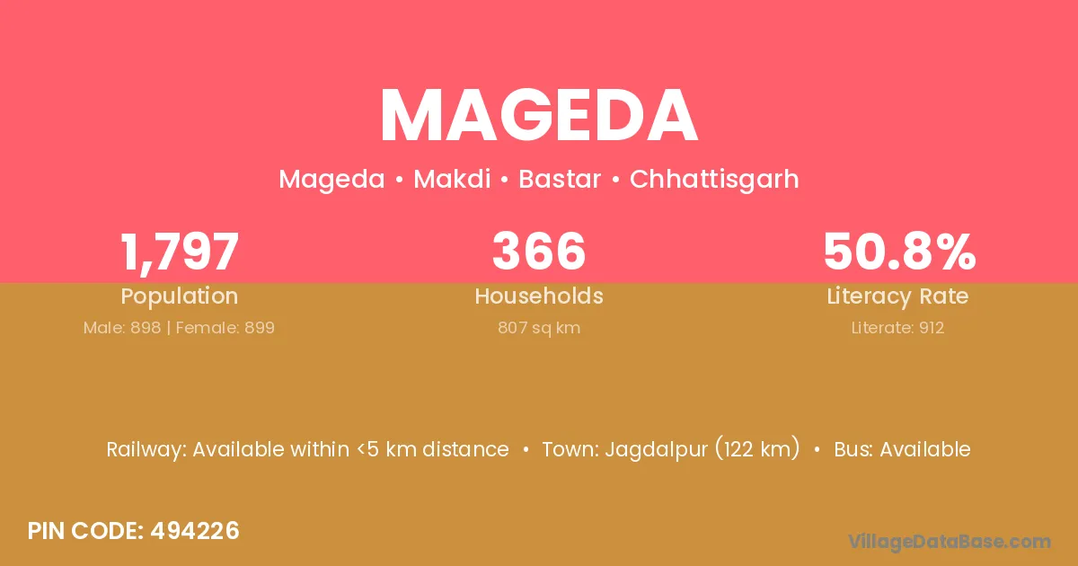 According to Census 2011 information, the village code of Mageda village is 494226.