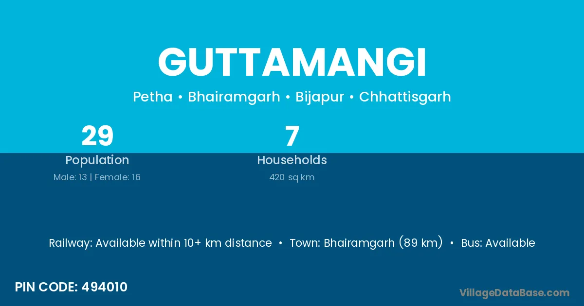 Guttamangi village has a total population of 29 people, of which 13 are males and 16 are females.