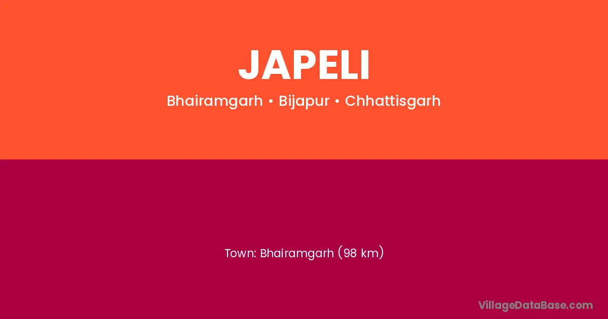 Bhairamgarh (98 km) is the nearest town to Japeli village for major economic activities and is located approximately 98 km away.