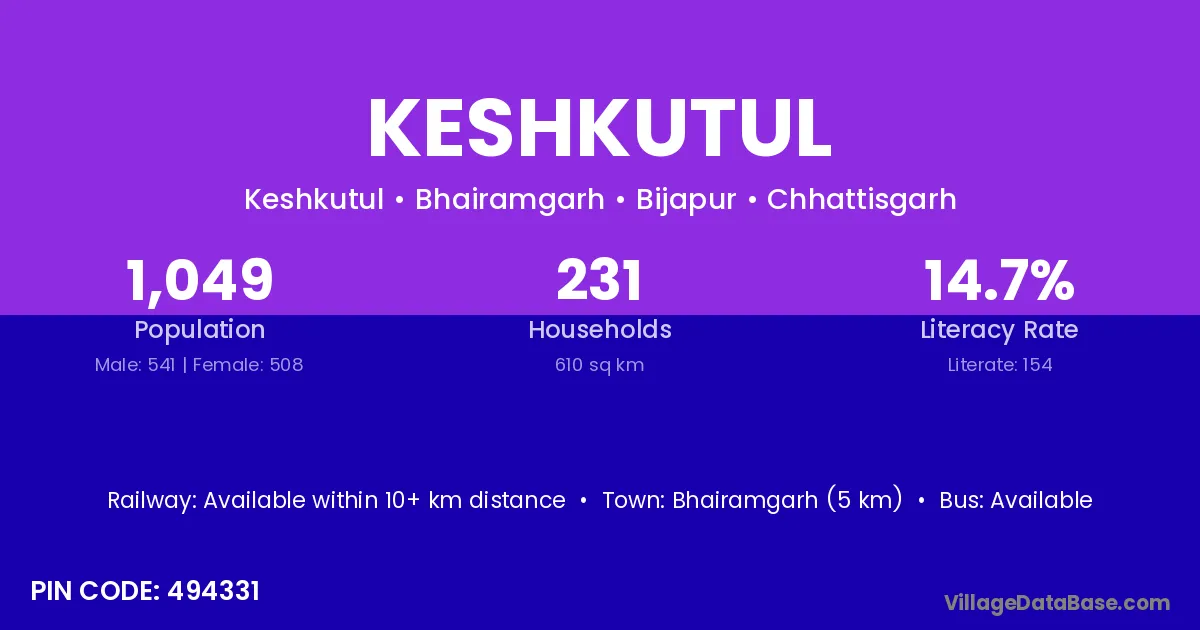 Bhairamgarh (5 km) is the nearest town to Keshkutul village for major economic activities and is located approximately 5 km away.