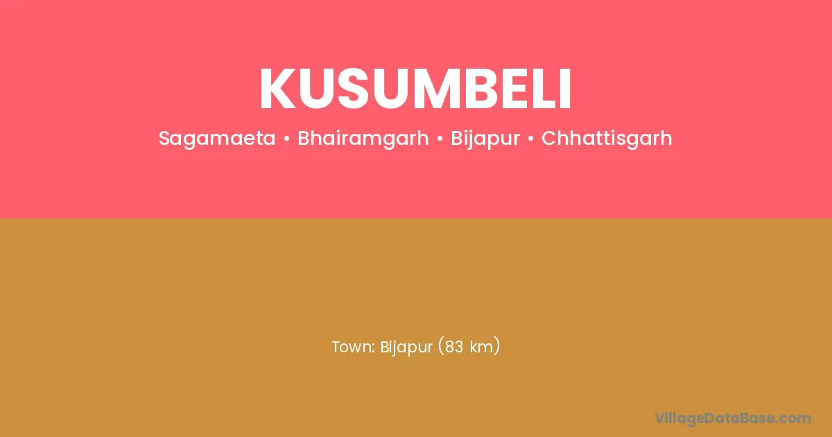 Bijapur (83 km) is the nearest town to Kusumbeli village for major economic activities and is located approximately 83 km away.