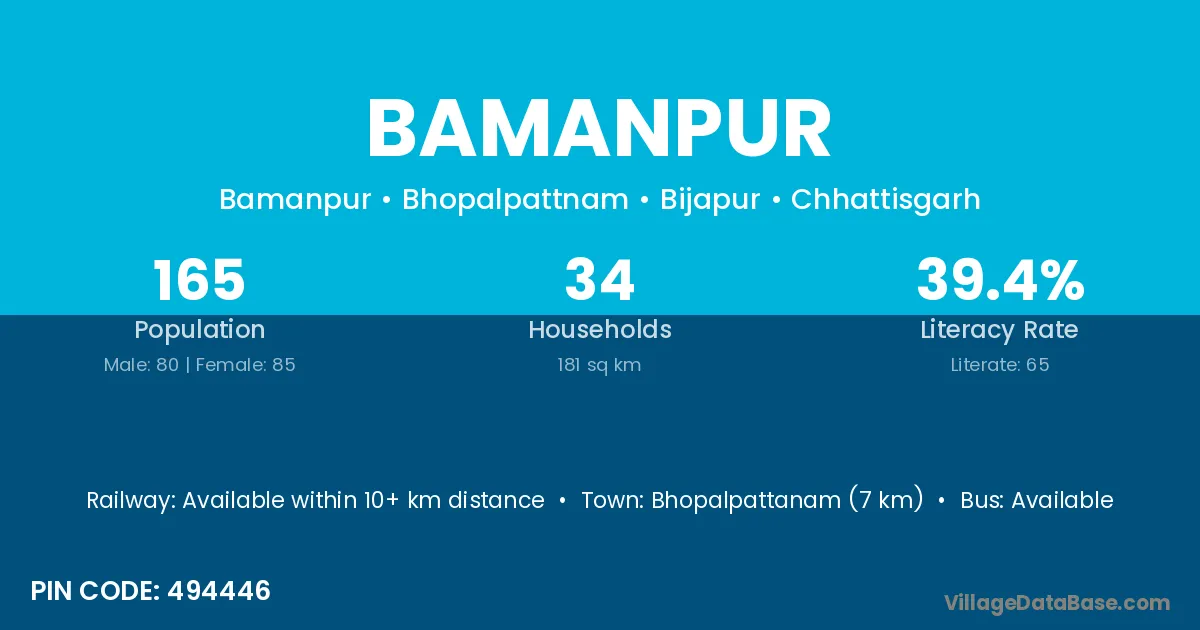 Bhopalpattanam (7 km) is the nearest town to Bamanpur village for major economic activities and is located approximately 7 km away.