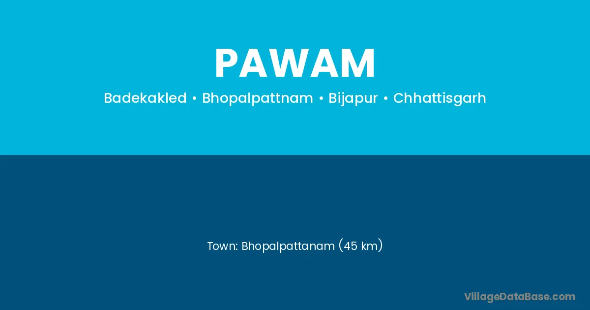 Bhopalpattanam (45 km) is the nearest town to Pawam village for major economic activities and is located approximately 45 km away.