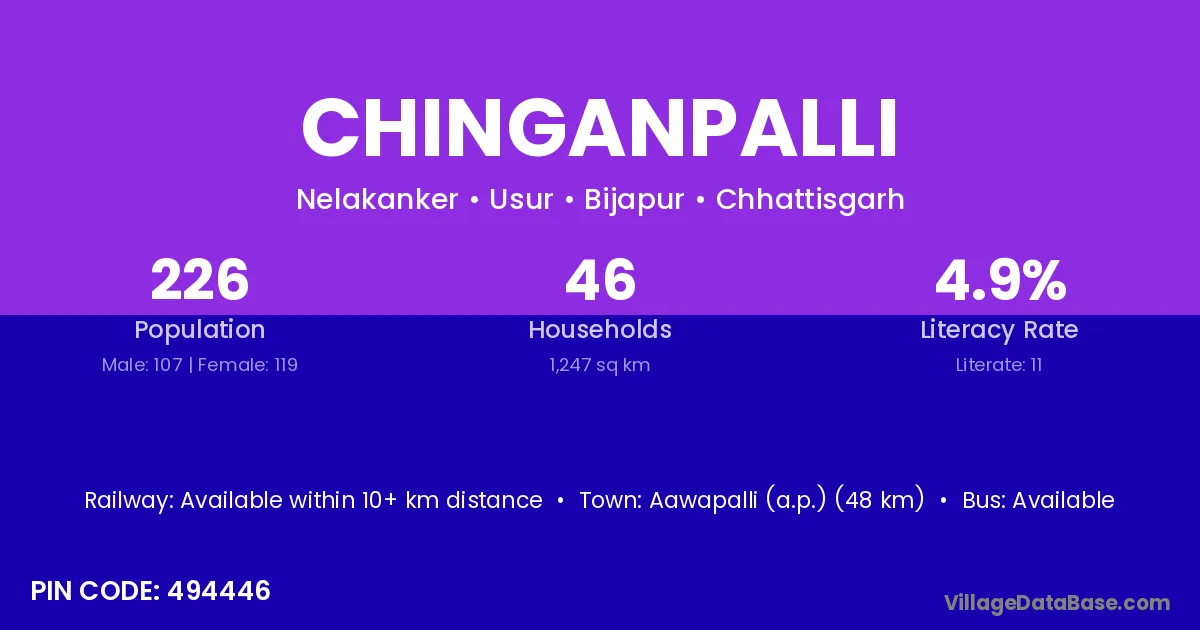 According to Census 2011 information, the village code of Chinganpalli village is 494446.