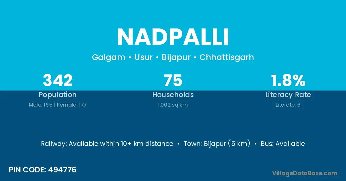 Bijapur (5 km) is the nearest town to Nadpalli village for major economic activities and is located approximately 5 km away.