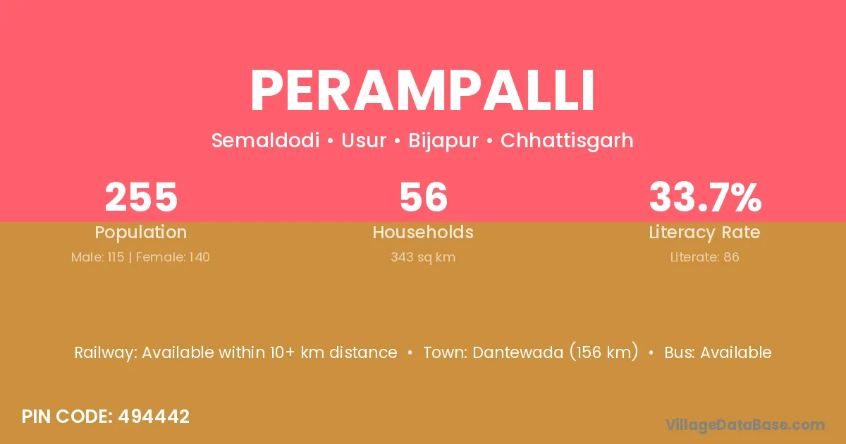 Perampalli village has a total population of 255 people, of which 115 are males and 140 are females.