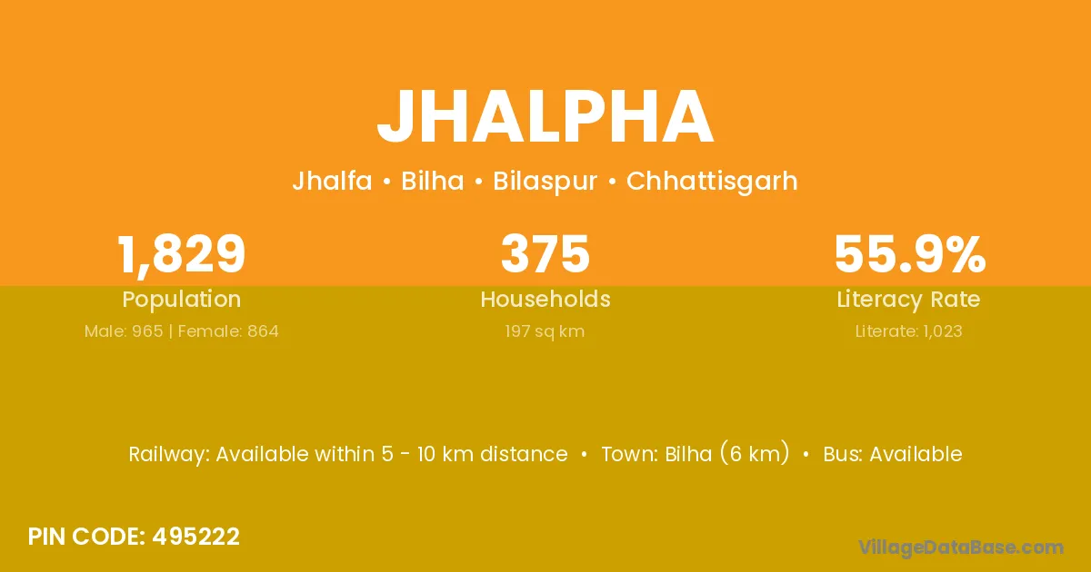 Jhalpha village is located in the Bilha Tehsil of the Bilaspur district in Chhattisgarh .